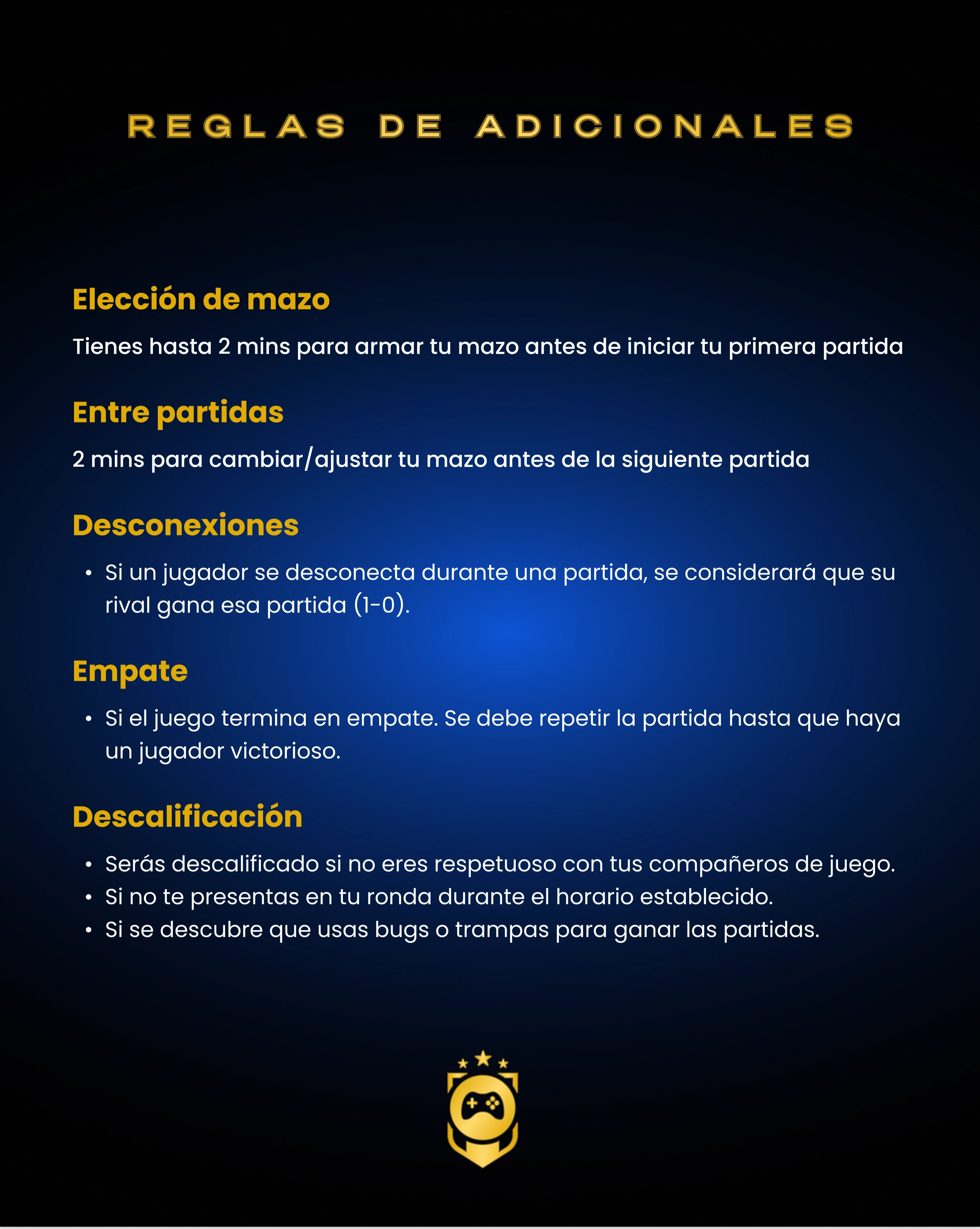 Serás descalificado si no eres respetuoso con tus compañeros de juego.